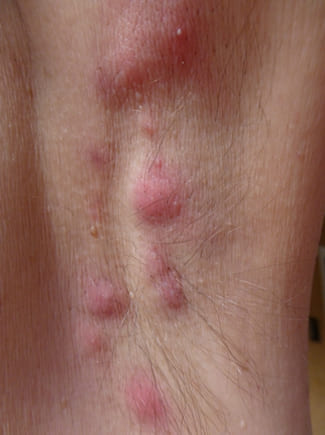 - Localização anatômica típica: axila, virilha, região perineal e perianal, nádegas, dobras infra- e intermamárias;